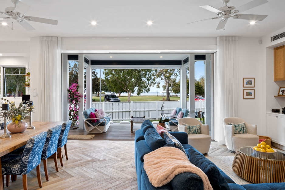 Discover the epitome of coastal living in this custom-designed blue house overlooking Moreton Bay, situated on the esplanade of Manly in Brisbane. This exceptional residence has been meticulously crafted to suit a corner block with two street frontages, resulting in a truly unique and eye-catching architectural masterpiece.
