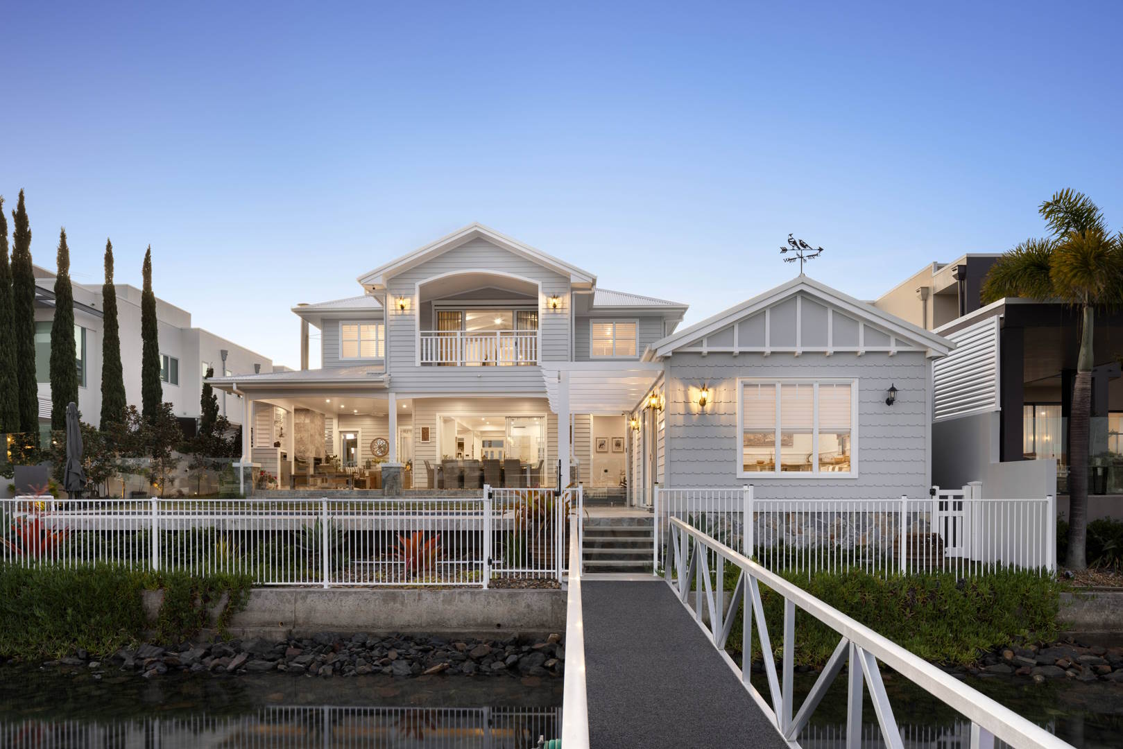 Introducing yet another architectural masterpiece – a two-level custom home that gracefully merges the classic and timeless Hamptons style with contemporary family-oriented living. Ideally situated on the serene canals of Cleveland, this remarkable residence offers over 600m2 of living space spread across two extraordinary levels.